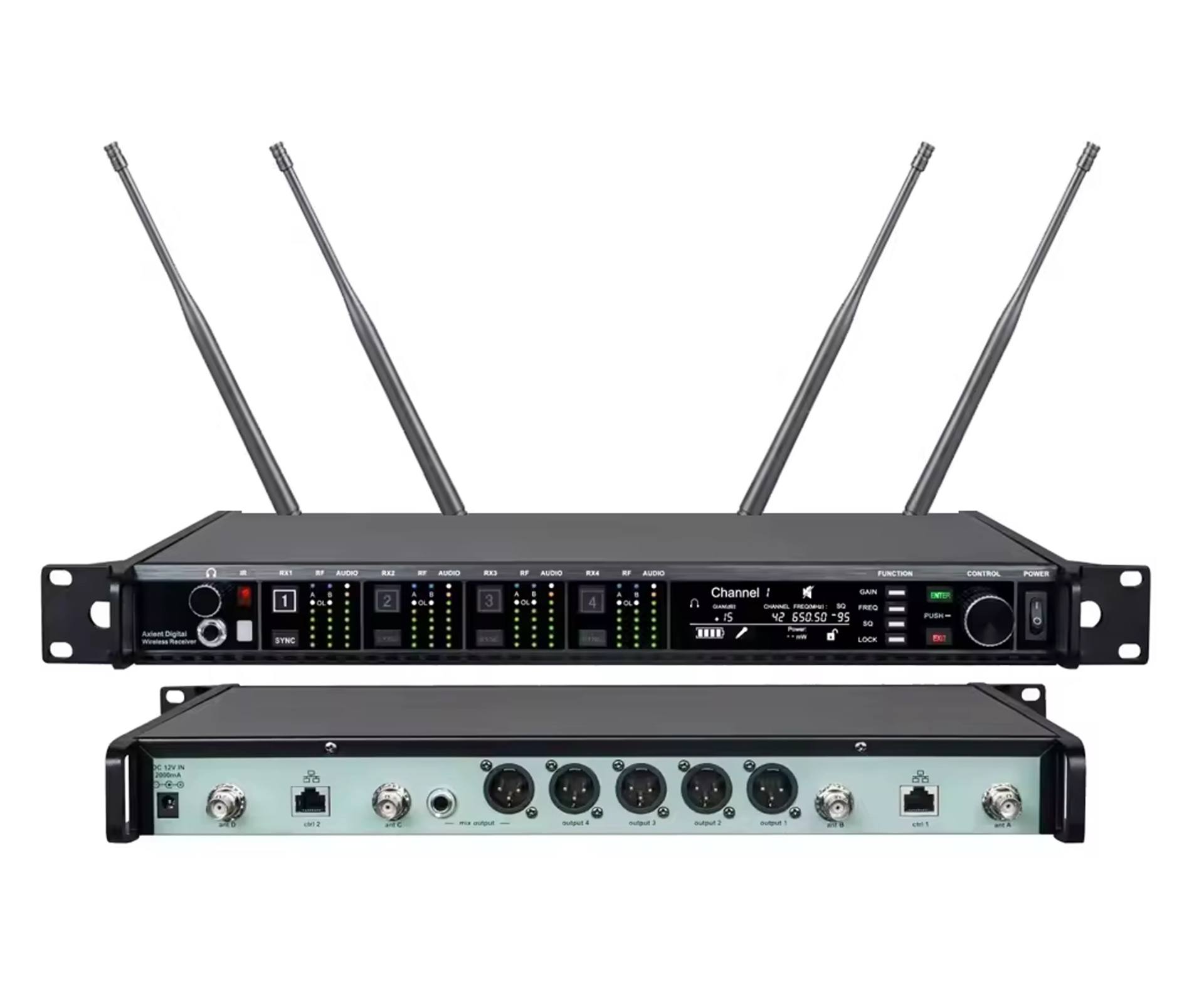 ●接收机背面设置4条橡胶接收天线,增强接收的信号,外观大方得体;