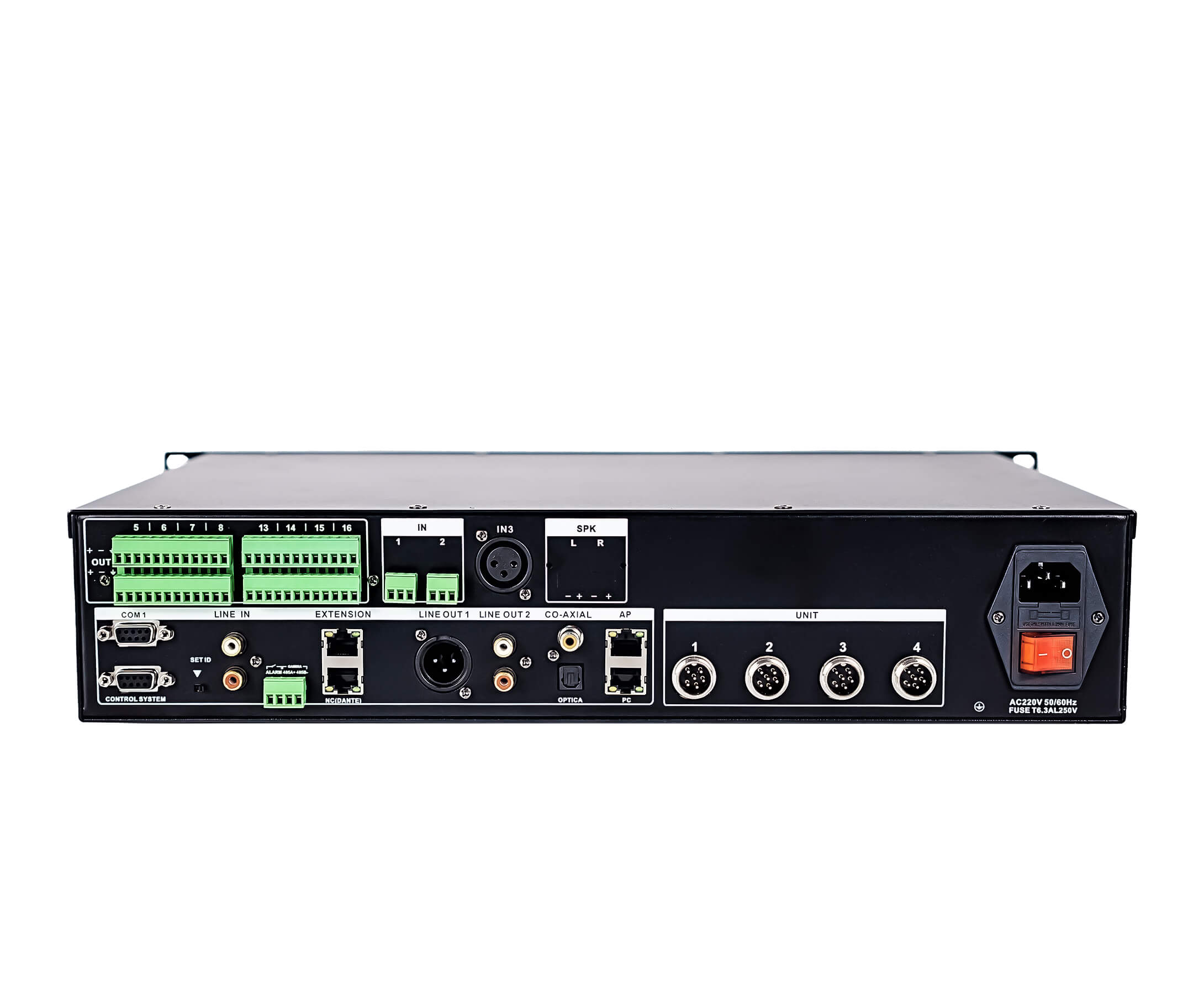 4.★内置高性能DSP处理器:具有音频矩阵、啸叫抑制、EQ、延时器,音量等调节功能。